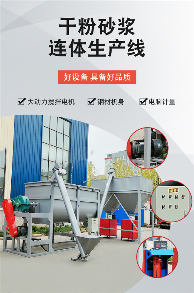 4、操作簡單:該設(shè)備無需基礎(chǔ)即可安裝,具有占地面積小、操作簡單、能耗低、產(chǎn)量高等優(yōu)點。可用于生產(chǎn)玻化微珠保溫砂漿、聚苯顆粒保溫砂漿和各種外墻特種保溫砂漿。