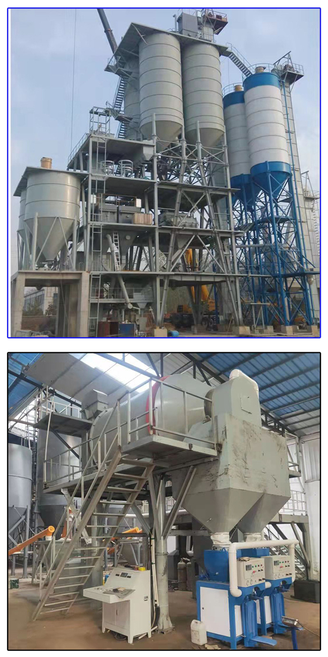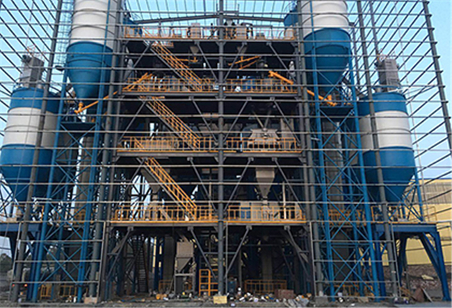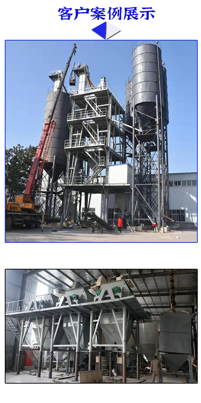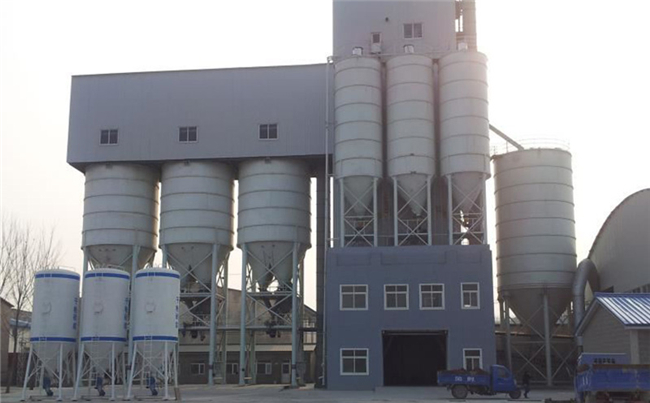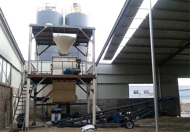 主要由提升輸送系統(tǒng)、計(jì)量配料系統(tǒng)、混合系統(tǒng)、儲(chǔ)料系統(tǒng)、包裝系統(tǒng)、除塵系統(tǒng)、控制系統(tǒng)、鋼架平臺(tái)等組成。