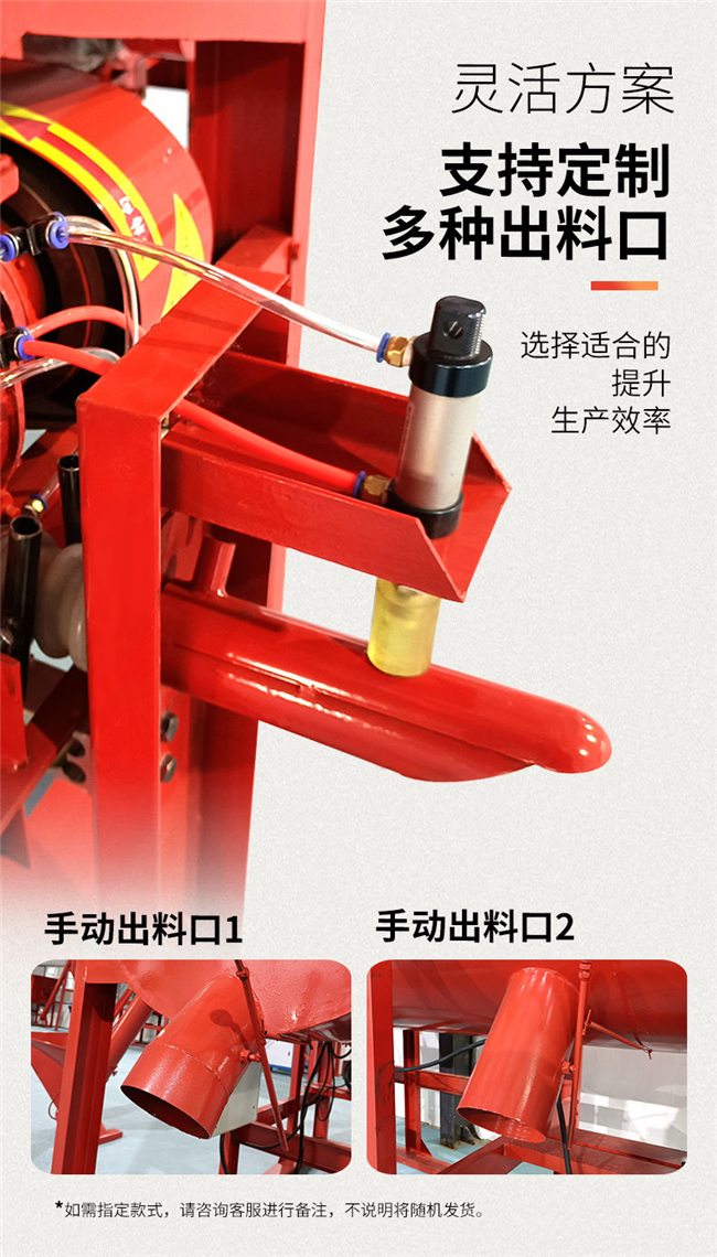 出料機采用電動腳踩開關控制,電機轉動螺旋軸推動物料卸出,本機密封性好,無粉塵滲出。出料快。